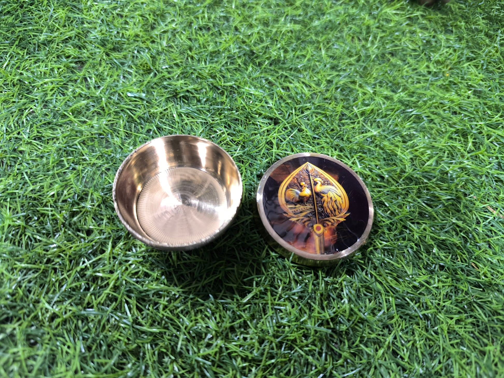 This beautifully designed decorative brass disc features the powerful Vel—the divine spear of Lord Murugan (Subramanya). Revered in Hindu tradition as the god of war, wisdom, and victory, Lord Murugan’s Vel is a sacred symbol of divine protection, courage, and triumph over evil.